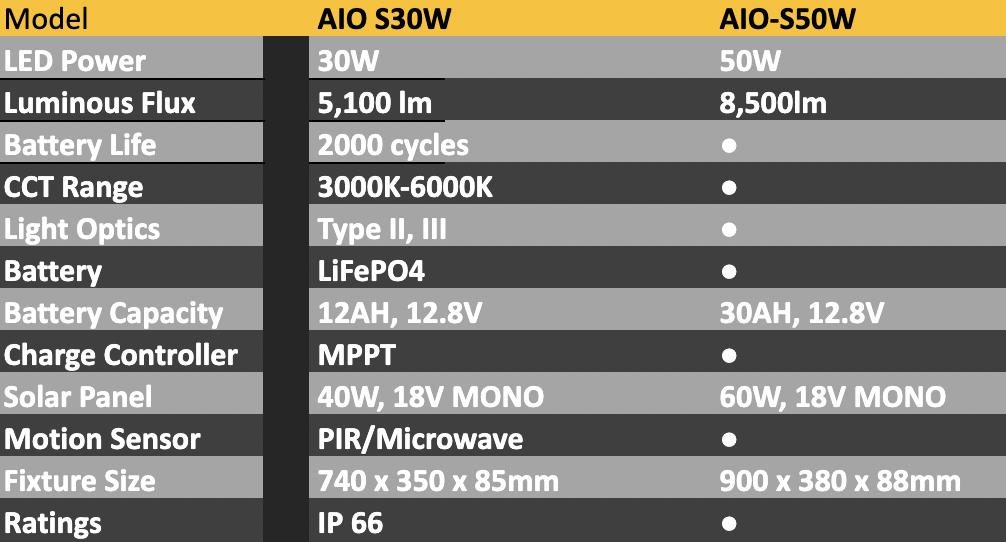 AIO Solar LED Street Light combines cutting-edge technology with exceptional design where the solar panel, battery and controller are integral to the luminaire. The robust ultra-thick casing is built to withstand extreme wind and resist against corrosion and harsh environments. The modern appearance and enhance aesthetic delivers a ultra-high lumens and high-efficiency MPPT charging controller.