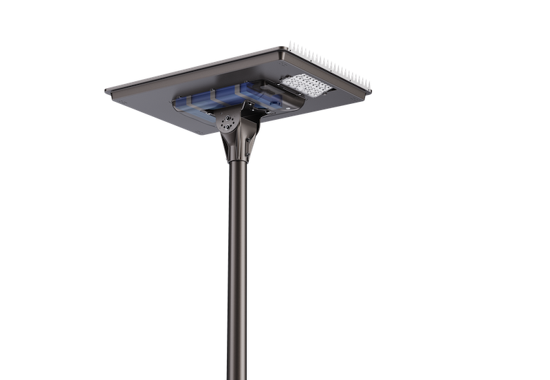 AIO Solar LED Street Light combines cutting-edge technology with exceptional design where the solar panel, battery and controller are integral to the luminaire. The robust ultra-thick casing is built to withstand extreme wind and resist against corrosion and harsh environments. The modern appearance and enhance aesthetic delivers a ultra-high lumens and high-efficiency MPPT charging controller producing 170lm/W.