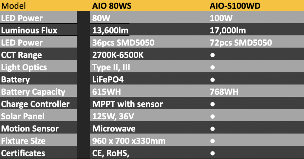 Single and Dual AIO-Series S80WS and S100WD Solar LED Street Light
