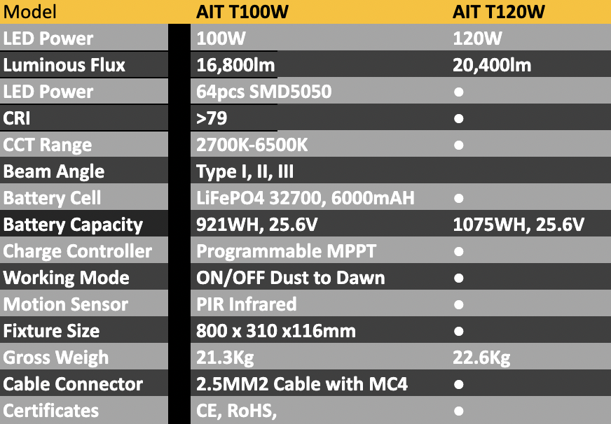 AIT- T100W and T120W Solar Street Light