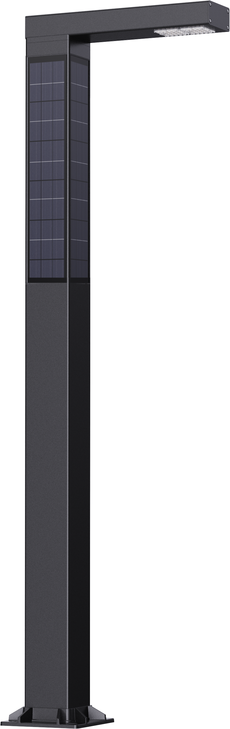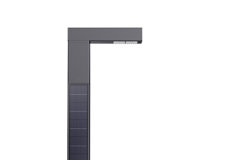 Square Vertical Solar Street Lighting Pole, a modern design of a modular solar wrap panel that blends seamlessly into its surrounding. The solar panels modules, battery and controller are integral to the pole design, which creates a built-in aesthetic appearance and enhanced beauty to any application. The high-efficiency solar wrap panels provides remarkable power generation, capable of operating up to 3 days in extreme environmental conditions. This design includes a smart wireless system making remote monitoring of the battery voltage, charging capacity, power usage, ON/OFF and dimming easy.