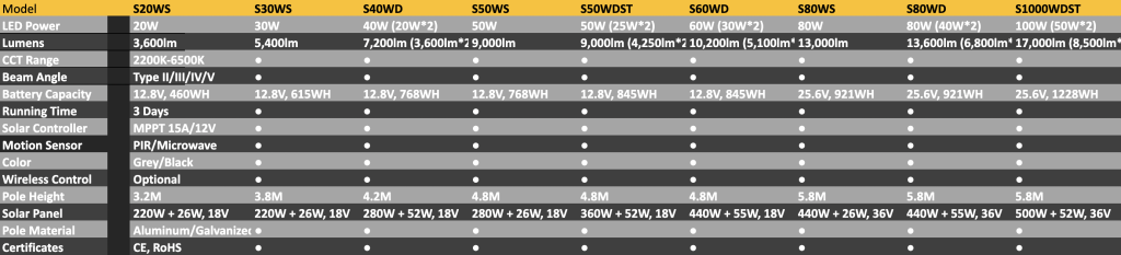 VSP-Series S20WS, S30WS, S40WD, S50WS, S50WDST, S60WD, S80WS, S80WD, S100WSDST Square Vertical Solare Street Lighting Pole