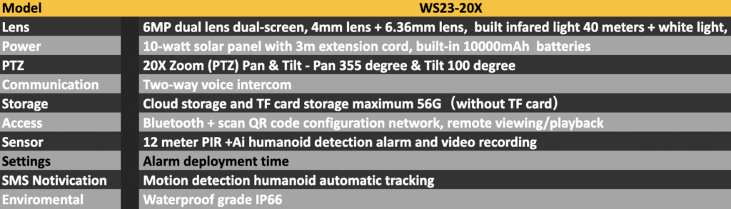 Solar 6MP CCTV Dual Lens, WiFi, PTZ Camera, 20x Zoom