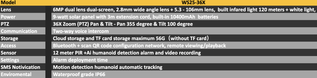 Solar 6MP CCTV Dual Lens, WiFi, PTZ Camera, 36x Zoom
